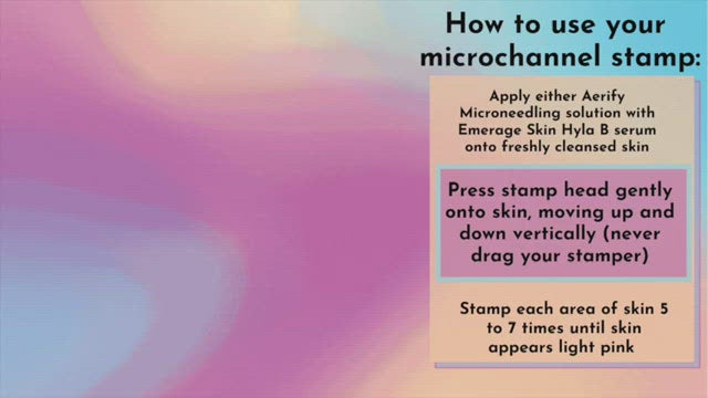 • The advance Emerage Microchannel stamp works by simply stamping 140 medial-grade titanium cones into your skin to exfoliate, stimulate, and prepare your skin to experience the benefits of natural bio signals. The microchannel needles penetrate right into the dermis or the middle layer of your skin to kickstart collagen production. When the needle penetrates the dermis, collagen is formed to repair and rebuild the tissues, forming a fresh new layer. Derma stamping creates very precise and uniform micro “injuries” on the skin’s top surfaces, triggering the body to respond by healing the treated areas quickly and efficiently. Paired with the right products such as bio growth factors beneficial results can be achieved safely and effectively.