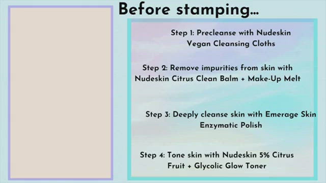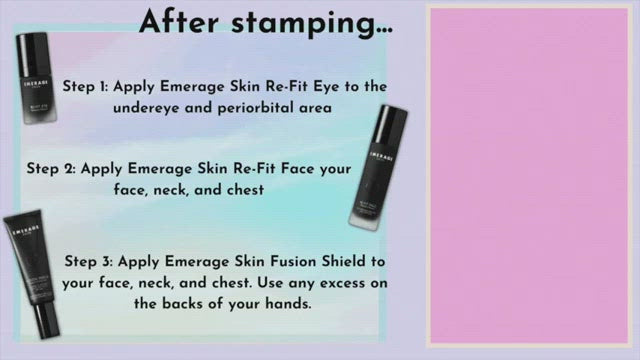 10. To maximize result, apply professionally recommended serums to the skin area being treated before using Stamp (be sure hands are clean), immediately followed by second serum application after pressing the stamp into the skin.